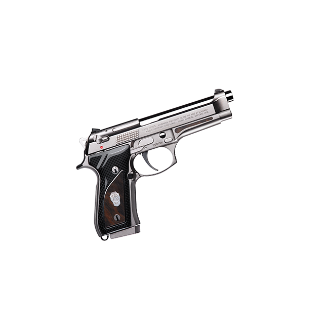 The Fusion’s frame is made of steel, with a custom design in the barrel area to allow the positioning of a hand-decorated root walnut wood insert. Beretta 92FS Compact
